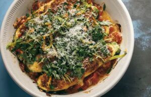 Bake for 25 minutes or until the zucchini is tender and the cheese is bubbling. Place the parsley, basil and lemon zest in a bowl and serve on top of the baked stuffed zucchini with a green salad on the side.